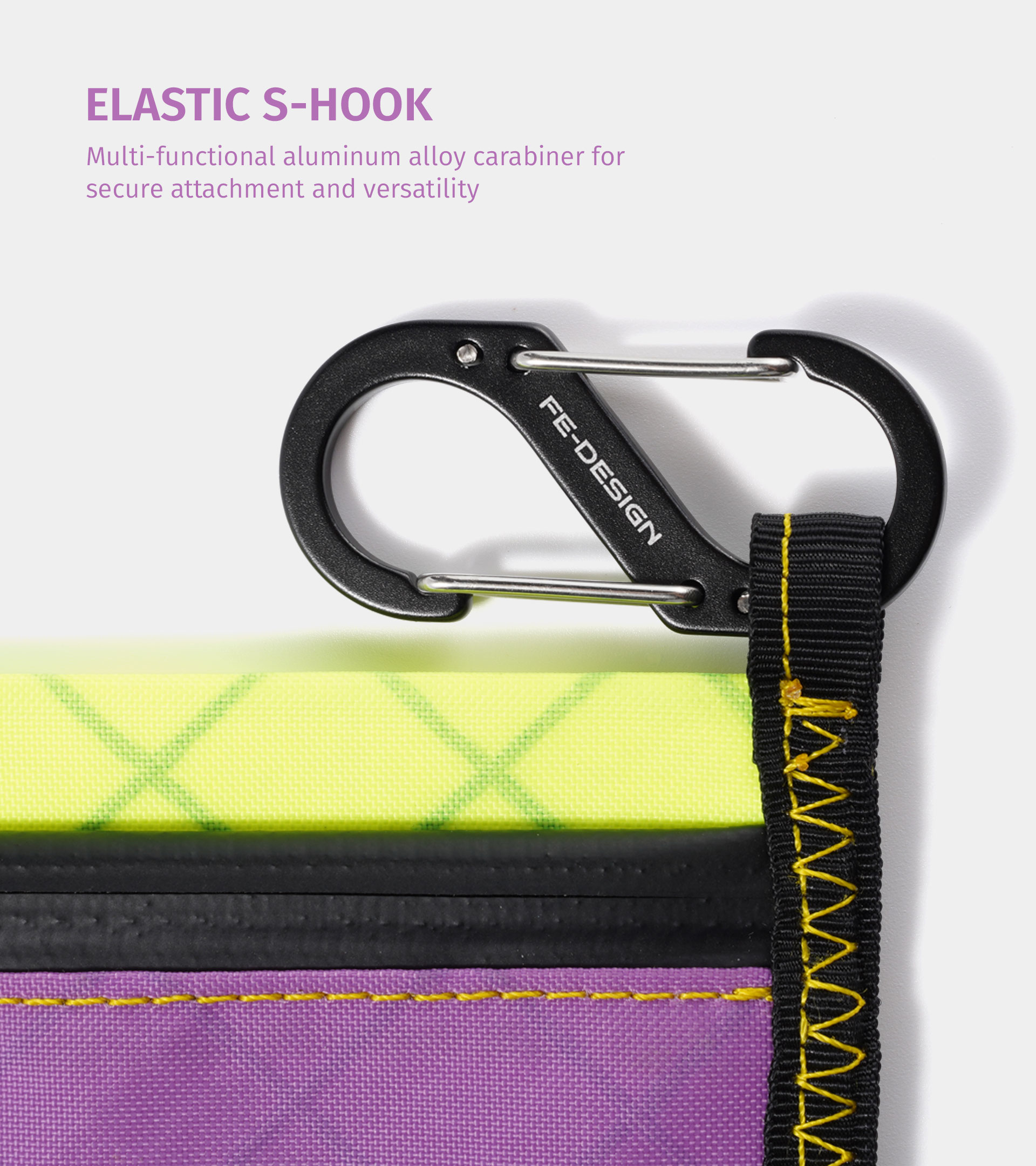 A Fé kártyatartó minden részletét gondosan megtervezték. Az Elastic S-Hook egy sokoldalú alumíniumötvözetből készült karabiner, amely biztonságosan rögzíthető táskákhoz, övekhez vagy felszerelésekhez.