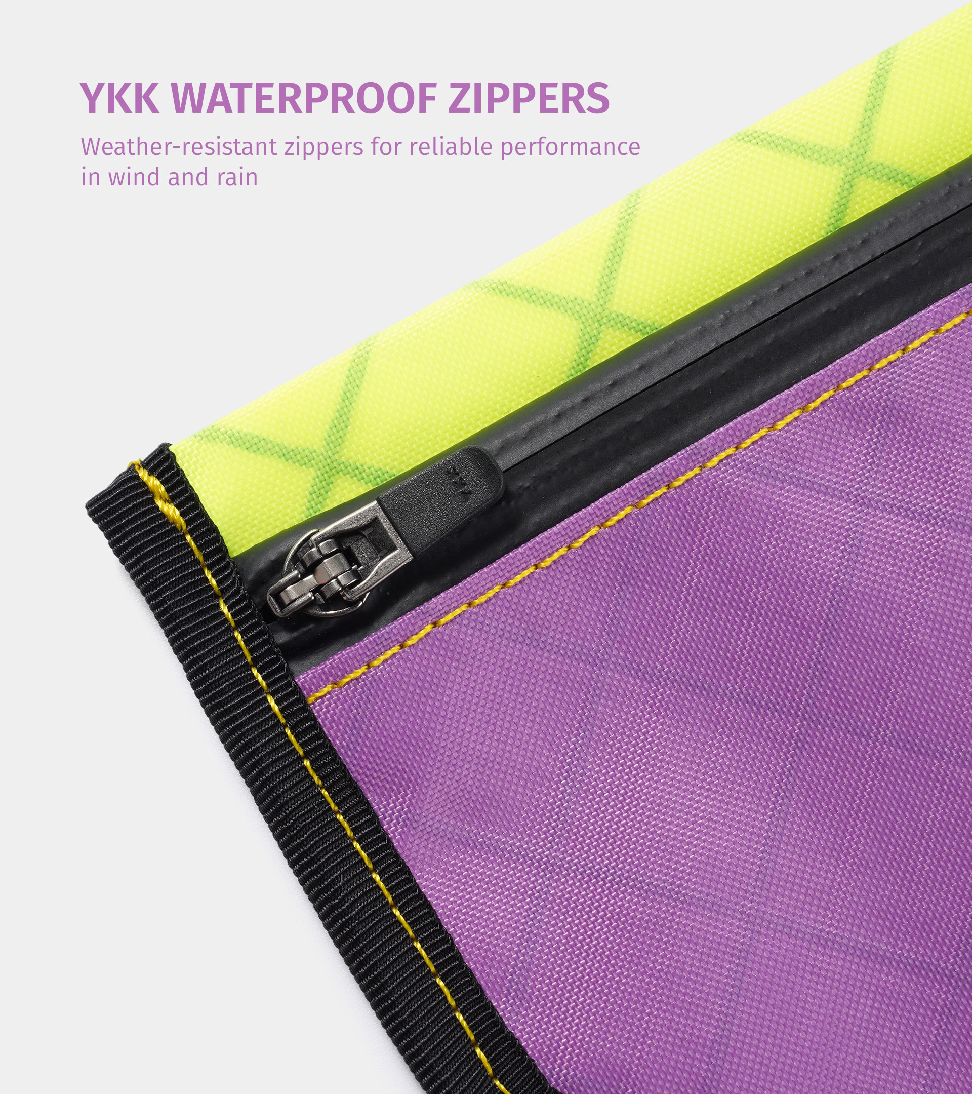 A Fé hímzett címke tiszta, tartós varrással finom, jellegzetes megjelenést kölcsönöz, míg a YKK vízálló cipzár megbízható időjárásállóságot biztosít, hogy tartalmát szél, eső vagy kiszámíthatatlan körülmények között is biztonságban és szárazon tartsa.