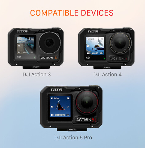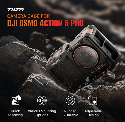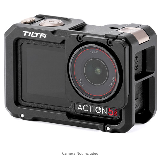 A Tilta TA-T72-FCC-B teljes kamerakeret (fekete) egy strapabíró, minimalista védőkeret a DJI Osmo Action 5 Pro/4/3 kamerákhoz, amely mágneses Tilta szűrőtartóval, kétoldalas gyorskioldóval az azonnali akkumulátorcserehez, felső hideg cipővel, oldalsó 1/4"-20 menettel és teljes kompatibilitással a Tilta mágneses alaplapjaival – mindez egy strapabíró, 150 g-os magnézium-alumínium testben, beépített ütéscsillapító szilikon párnákkal, a portok és gombok akadálymentes elhelyezkedésével.