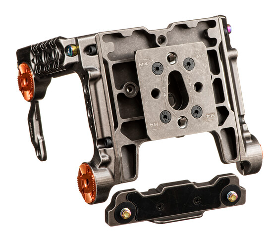 A Tilta TA-T08-FCC a kis RED KOMODO-t teljes értékű filmes felszereléssé alakítja, anélkül, hogy feláldozná kompakt előnyét. A keret egy felső lemezből áll, amely közvetlenül a kamera testéhez van csavarozva (beépített hideg cipővel + 1/4"-20 pontokkal), bal/jobb oldalsó panelekből és egy alsó lemezből, amely tucatnyi csavarodásgátló rögzítőmenettel rendelkezik a tökéletes gimbal egyensúly érdekében. Négy ARRI-szabványos rozetta (két-két oldalanként) fogadja a Tilta fa fogantyúkat, hosszabbító karokat vagy harmadik féltől származó rozetta kiegészítőket. Egy speciális gyorskioldó adapterlemez (külön megvásárolható) segítségével a keret másodpercek alatt rögzíthető a Tilta 15 mm-es LWS alaplemezéhez a KOMODO számára. Minden felületet 1/4"-20 és 3/8"-16 menetek borítanak ARRI rögzítőcsapokkal, így ideális monitorok, felvevők, fókuszmotorok, felső fogantyúk és NATO kiegészítők számára.