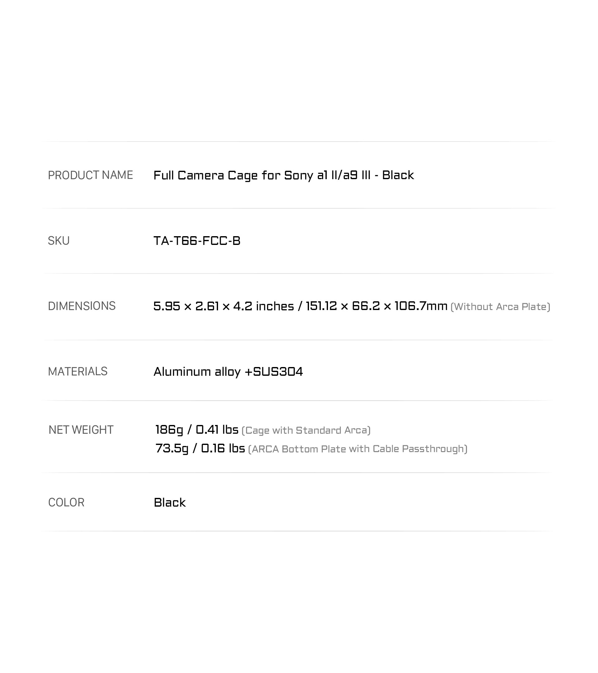 A teljes ketrec hidegcipő-felvevővel, M3 menettel, 1/4″-20 menettel és 3/8″-16 1/4″-20 menetes adapterrel rendelkezik.