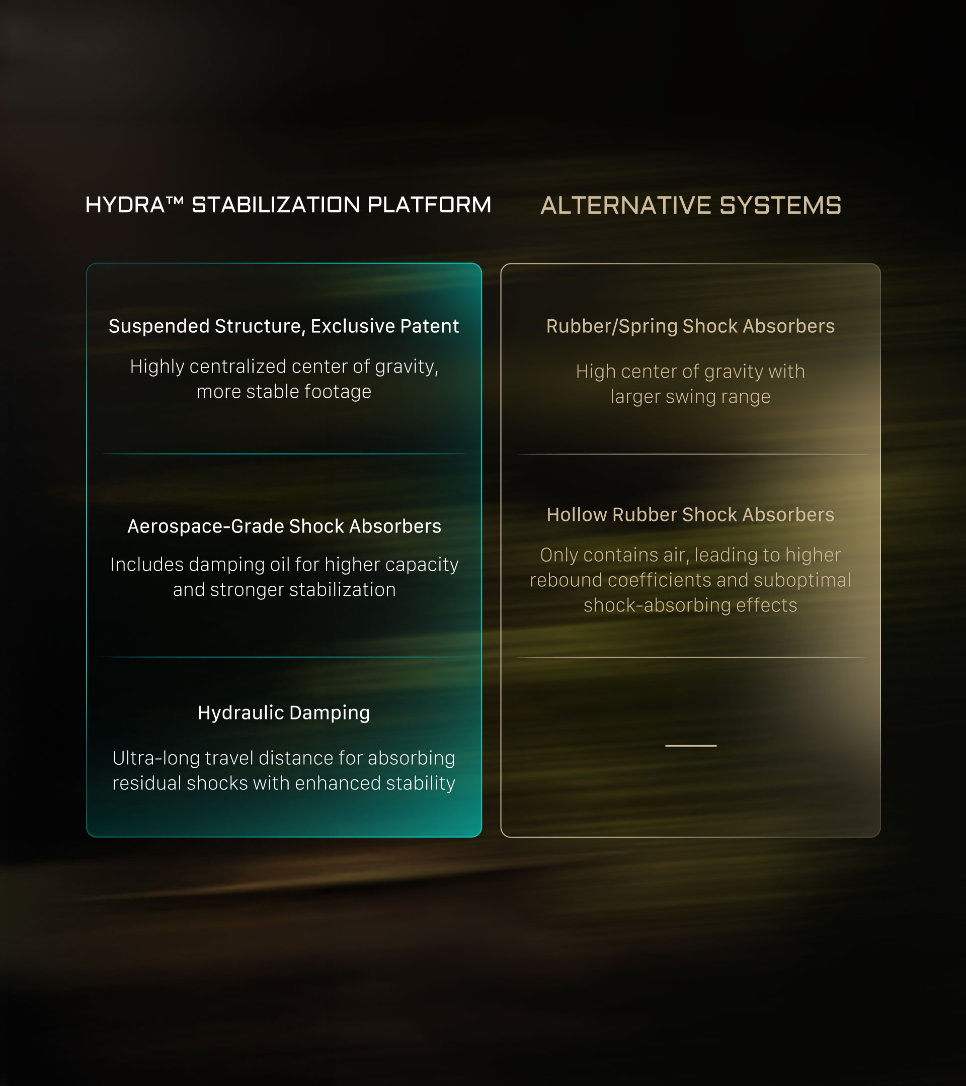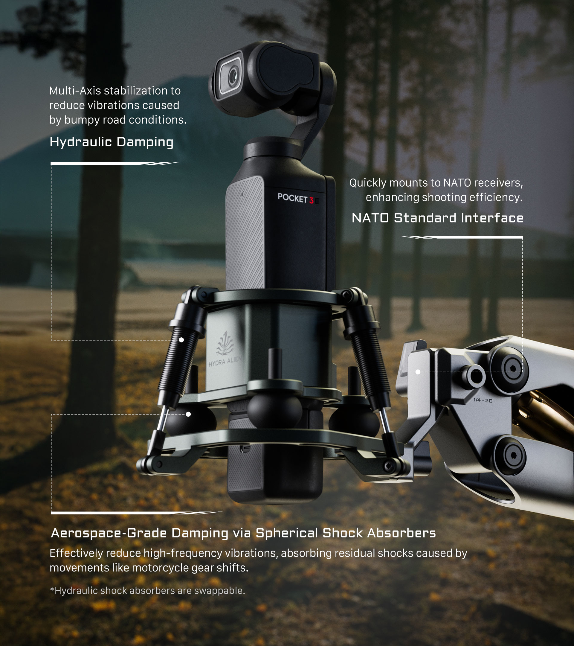 A lengéscsillapító fej egy olyan eszköz, amelynek feladata a kép stabilitását veszélyeztető mikrovibrációk ellensúlyozása. Ez a speciális kiegészítő javítja az Alien Mini teljesítményét, és még nehéz felvételi körülmények között is sima, professzionális minőségű eredményeket biztosít.