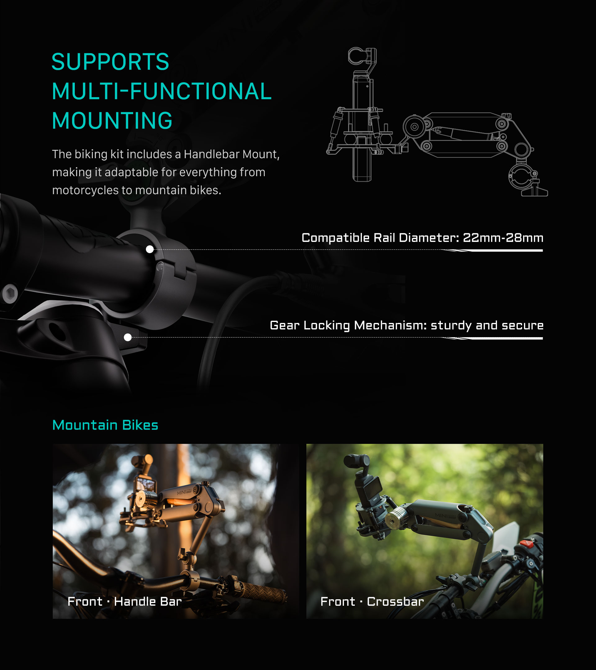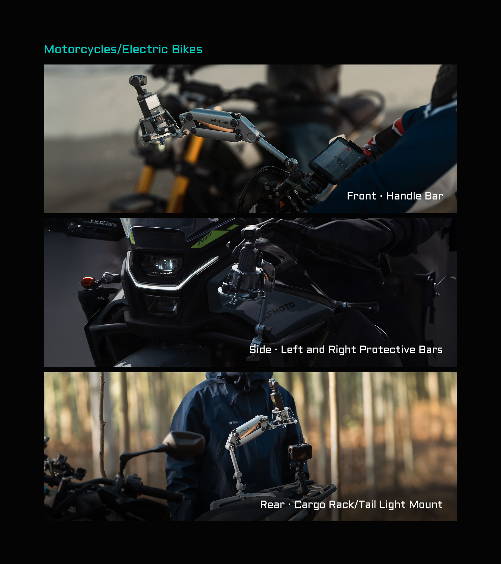 Ez a miniatűr kar kompatibilis kisebb kamerarendszerekkel, mint például a DJI Action 3/4, DJI Pocket 3, Insta360 X4/X3, valamint bármely más, legfeljebb 1,32 font súlyú rendszerrel, beleértve a Khronos ökoszisztémával ellátott okostelefonokat is.