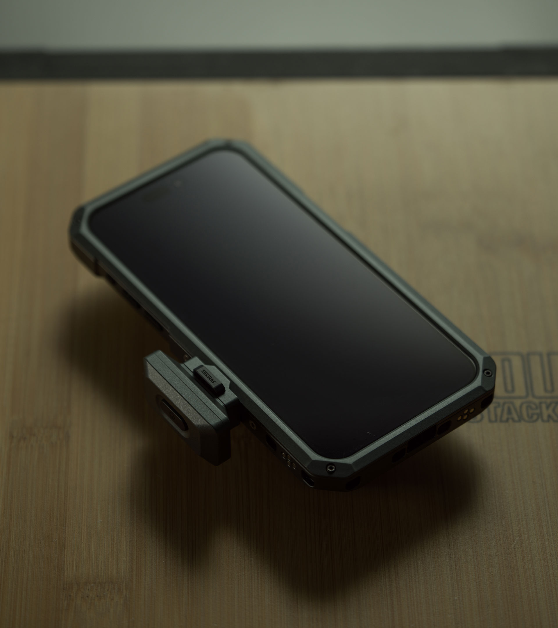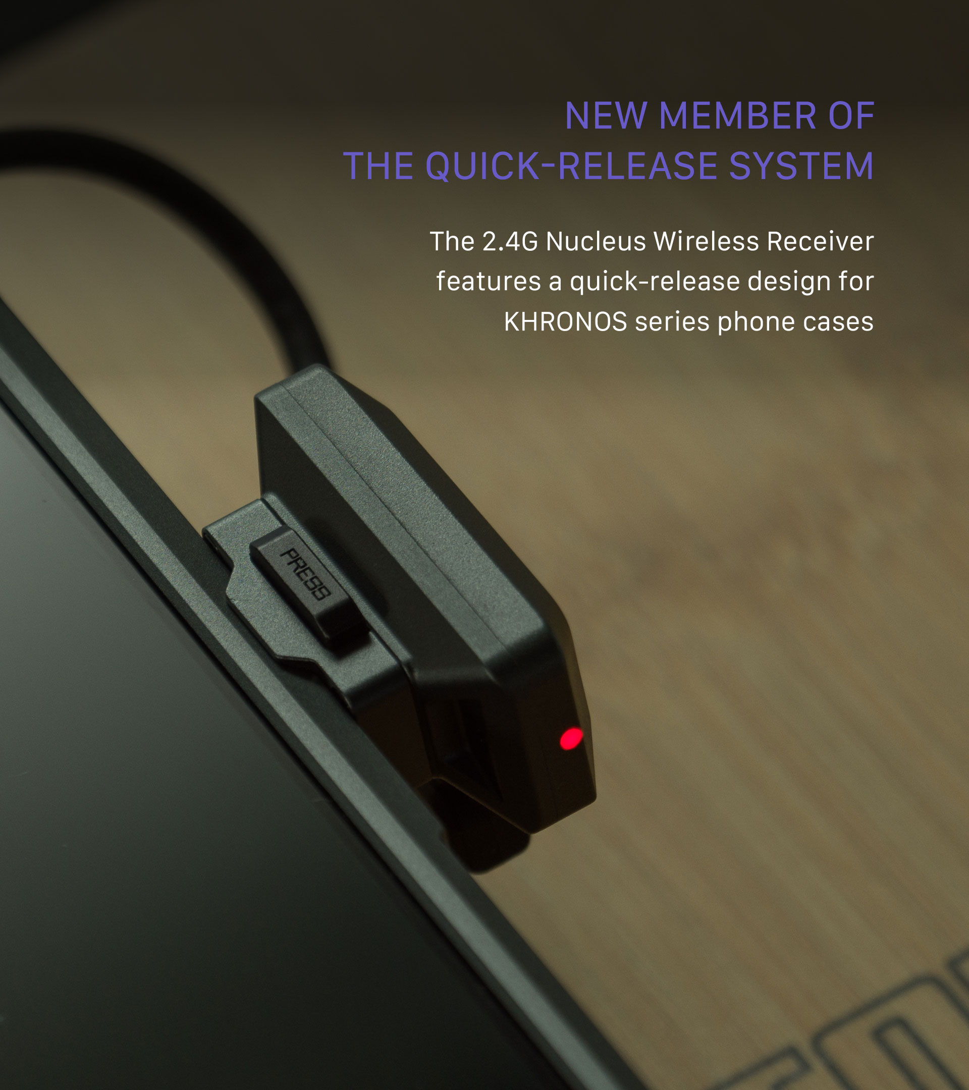 Bemutatjuk a Khronos 2.4G Nucleus vezeték nélküli vevőt. Ez a tartozék a Khronos iPhone tokunkon található gyorskioldó csatlakozón keresztül rögzíthető, és a mellékelt USB-C kábelen keresztül csatlakozik az iPhone 15 Pro és Pro Max készülékhez.