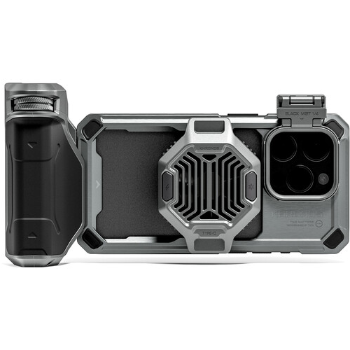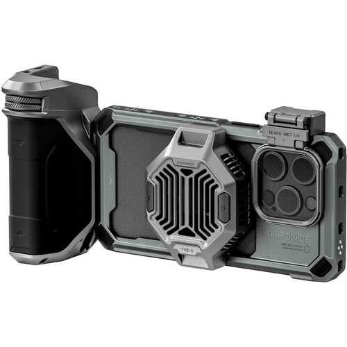 A Tilta Khronos iPhone 15 Pro Advanced Kit Space Gray színben egy minden egyben megoldás a mobil filmkészítők számára. Ez az átfogó készlet tartalmazza a Khronos iPhone 15 Pro tokot, a hűtőrendszert, a Focus PD fogantyút, a gyorskioldó szűrőtálcát, valamint az ND 0,6 és 1,2 szűrőket. Rögzítő bilinccsel tervezték, lehetővé teszi a tartozékok áramellátását, valamint MagSafe és Bluetooth kompatibilitást kínál. A készlet sokoldalú töltési lehetőségeket is biztosít az 5/10 W-os többfunkciós képességekkel.