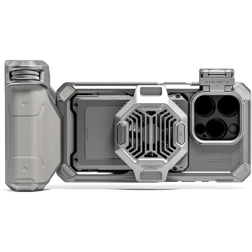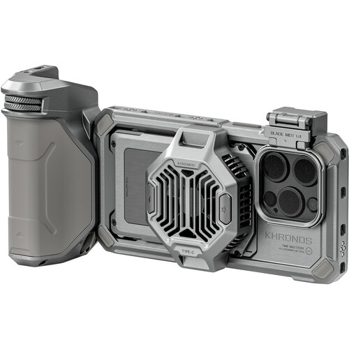 A Tilta Khronos iPhone 15 Pro Advanced Kit Titanium White színben a mobil filmkészítéshez készült, átfogó tartozékokat kínál a forgatási élmény fokozásához. Ez a fejlett készlet tartalmazza a Khronos iPhone 15 Pro tokot, a hűtőrendszert, a fókusz PD fogantyút, a gyorskioldó szűrőtálcát, valamint az ND 0,6 és 1,2 szűrőket. A rögzítő bilincs kialakítása biztosítja a biztonságos rögzítést, és lehetővé teszi a tartozékok áramellátását. A készlet MagSafe és Bluetooth kompatibilis is, így sokoldalú, 5/10 W-os, többfunkciós töltési lehetőségeket biztosít.