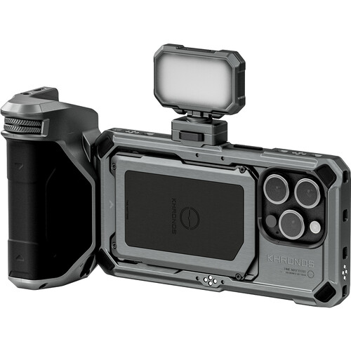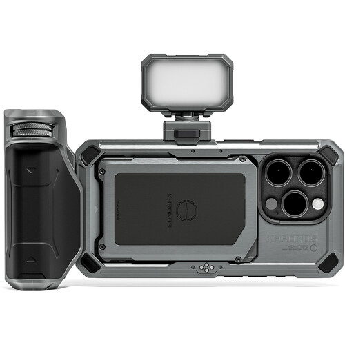 A Tilta Khronos iPhone 15 Pro Basic Kit űrszürke színben, akkumulátorral kifejezetten a mobil filmkészítés szerelmeseinek készült. A Khronos iPhone 15 Pro tokkal rendelkezik, amely biztonságos illeszkedést és kompatibilitást biztosít a Khronos kiegészítő ökoszisztémával. A készlet tartalmazza a Khronos Focus PD fogantyút a jobb stabilitás és irányítás érdekében, valamint a Khronos Mini Daylight LED lámpát, amely három fényerőfokozatot és magas, 95 CRI értéket kínál a pontos színvisszaadás érdekében. Az állítható dőlésszögű és vízszintes forgatással a filmkészítők pontos kontrollt kapnak a keretezés és a kompozíció felett. A beépített akkumulátor támogatja az USB-C töltést, így megszakítás nélküli, hosszan tartó használhatóságot biztosít.