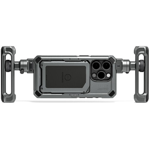 A Tilta Khronos iPhone 15 Pro Lightweight Kit Space Gray színben a mobil filmkészítés szerelmeseinek készült. A Khronos iPhone 15 Pro tokkal és állítható fogantyúval kiegészített készlet zökkenőmentesen illeszkedik a Khronos kiegészítő ökoszisztémába. A robusztus, 4 csavaros házzal és a 9 rögzítési ponttal rendelkező rögzítő bilinccsel az iPhone 15 biztonságosan védve van. Ezenkívül az elektronikus érintkezési pontok megkönnyítik a tápellátást, míg az állítható fogantyú sokoldalú magassági beállításokat és 180°-os elforgatást kínál. Az 1/4"-20-as menettel és kényelmes szilikon markolattal ellátott készlet kényelmet és rugalmasságot biztosít a filmkészítéshez.
