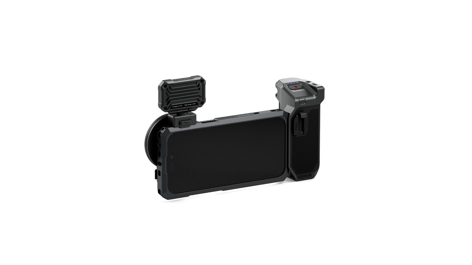 Focus PD fogantyú (akkumulátorral): Ez az elsődleges kiegészítő javítja az irányítást és a stabilitást. Belső USB-C újratölthető akkumulátorral rendelkezik a rendszer áramellátásához, és tartalmaz egy Bluetooth-kompatibilis tárcsát az iPhone fókusz- és zoomfunkcióinak pontos vezérléséhez, valamint egy dedikált felvétel gombot.