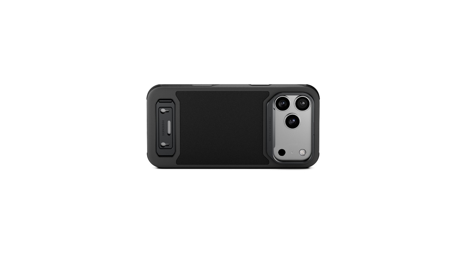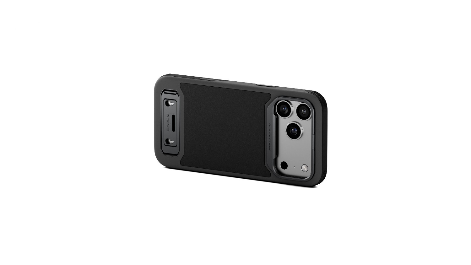 A Tilta Khronos Lite Case in Black egy könnyű, professzionális minőségű védőtok az iPhone 17 Pro Max készülékhez. Beépített állvánnyal rendelkezik a kézmentes megtekintéshez, mágneses hátlapjával kiegészítők rögzíthetők, valamint megerősített védelmet nyújt a kamera és a sarkok számára.