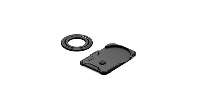 A fekete Tilta Khronos multifunkcionális mágneses hátlap egy MagSafe-kompatibilis kiegészítő az iPhone 17 Pro/Pro Max (és régebbi modellek) számára, amelynek célja a mindennapi és filmkészítési funkcionalitás bővítése. Állítható támasztékkal, kiegészítőkhöz való mágneses gyűrűvel, kihúzható univerzális késsel, lapos fejű szerszámmal és vonalzójelölésekkel rendelkezik.