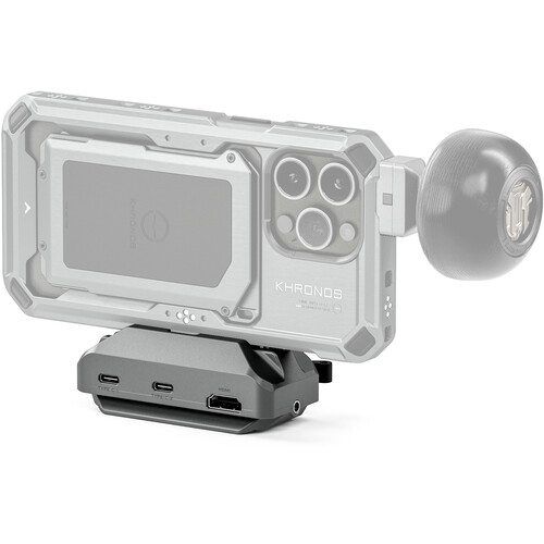 A Tilta Khronos Quick Release USB-C Hub Space Gray színben növeli az iPhone csatlakoztathatóságát külső eszközökkel való integrálással és állványokra vagy kardánokra való rögzítéssel. Ez a sokoldalú hub két USB-C portot, egy HDMI-portot és egy 3,5 mm-es hangkimenetet tartalmaz, mindezt egy integrált ARCA gyorskioldó lemezbe építve, amely lehetővé teszi az USB-C portok egyidejű használatát a zökkenőmentes csatlakozás és energiagazdálkodás érdekében.