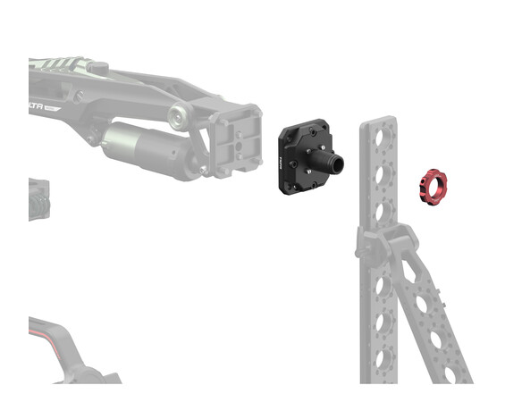 A Tilta HDA-T08-MMA a híd. Ez a CNC-megmunkált alumínium és rozsdamentes acél adapter közvetlenül a Mini lengéscsillapító kar alapjához van csavarozva, és egy szabványos Mitchell rögzítőelemmel rendelkezik, amelynek rögzítőanyája kastélyanyás. Ezután bármely Hydra Alien Pro fecskefarkú lemezbe (6″/10″ tapadókorongok, 50 mm-es Speed Rail bilincsek, hordozókarok stb.) pontosan úgy illeszkedik, mint a natív Pro kar – így a Mini azonnal ugyanolyan nagy sebességű, 20 kg-os külső járműre szerelhetőséget kap, miközben a holtjáték és a tökéletes egyensúly megmarad.