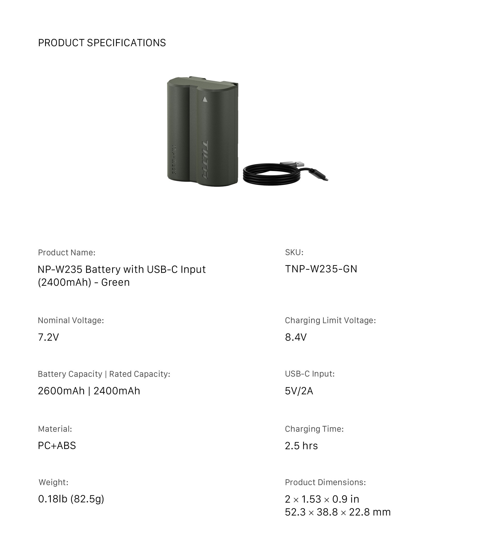 Akár profi, akár rajongó, az NP-W235 intelligens, hatékony és biztonságos energiaellátási megoldást jelent minden fotózási és videózási igénye számára.