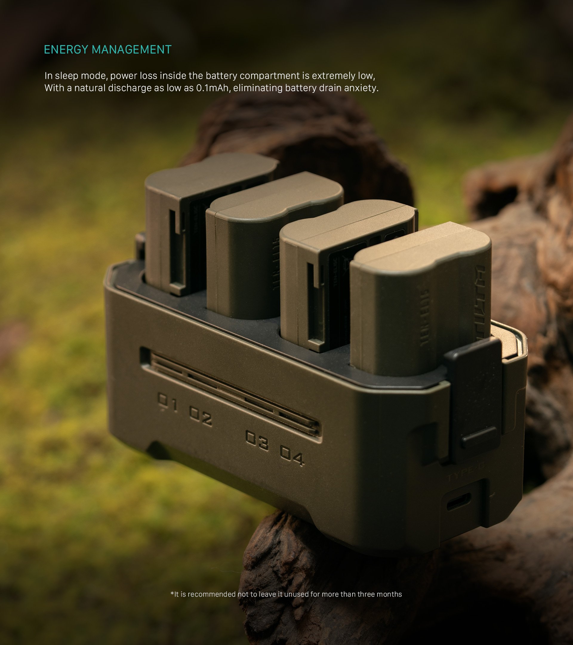 Négy EN-EL15C akkumulátor teljes feltöltésére képes, így a felhasználók akár 13 órányi videofelvételre vagy 2400 fotó elkészítéséhez elegendő energiára lesznek képesek, ami tökéletes a hosszú fotózásokhoz.