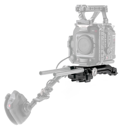 A Tilta ES-T22-SPB kifejezetten a Canon C400 ergonómiai potenciáljának teljes kihasználására lett kifejlesztve, és másodpercek alatt kényelmes kézi válltartóvá alakítja a filmkamerát. A felső részén egy nyomógombos, Manfrotto-kompatibilis gyorskioldó vevő található, amely a dedikált C400 keretet/lemezt (a Tilta C400 készleteiből) holtjáték nélkül rögzíti. Az alsó rész az iparági szabványnak megfelelő Sony VCT-U14 ékprofilot használja a professzionális állványokra, hi-hatokra vagy csúszkákra való szilárd rögzítéshez. Az elülső és hátsó 15 mm-es LWS rúdbilincsek támogatást nyújtanak a nehéz filmes zoomokhoz vagy follow-focus motorokhoz, míg a meghosszabbított elülső lemez állítható támasztólábakat tartalmaz az EF/RF/PL objektívadapterekhez. A két oldalon található két ARRI-szabványos rozetta (M6) a Tilta fa vagy hosszabbító markolatokat fogadja, a vastag, kontúrozott szilikon vállpárna pedig tökéletesen elosztja a súlyt a hosszú dokumentumfilmek vagy ENG-stílusú felvételek során.