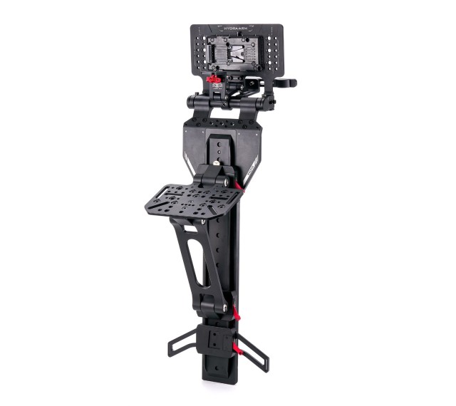 A Tilta Rear Seat Monitor Mounting Bracket Pro a nagyméretű monitorok és vezérlők biztonságos rögzítésére szolgál a kamerás autó hátsó ülésén. A fejtámlához rögzíthető, és a további stabilitás érdekében hosszú, padlót tartó lemezzel rendelkezik. A tetején egy csuklós 1/4″-20-as rögzítési pont található a monitorok számára, valamint egy integrált V-Mount akkumulátorlemez az eszközök tápellátásához. Ez a nagy teherbírású konzol ideális nagyobb vezérlőrendszerek, például a DJI Master Wheels rögzítéséhez.