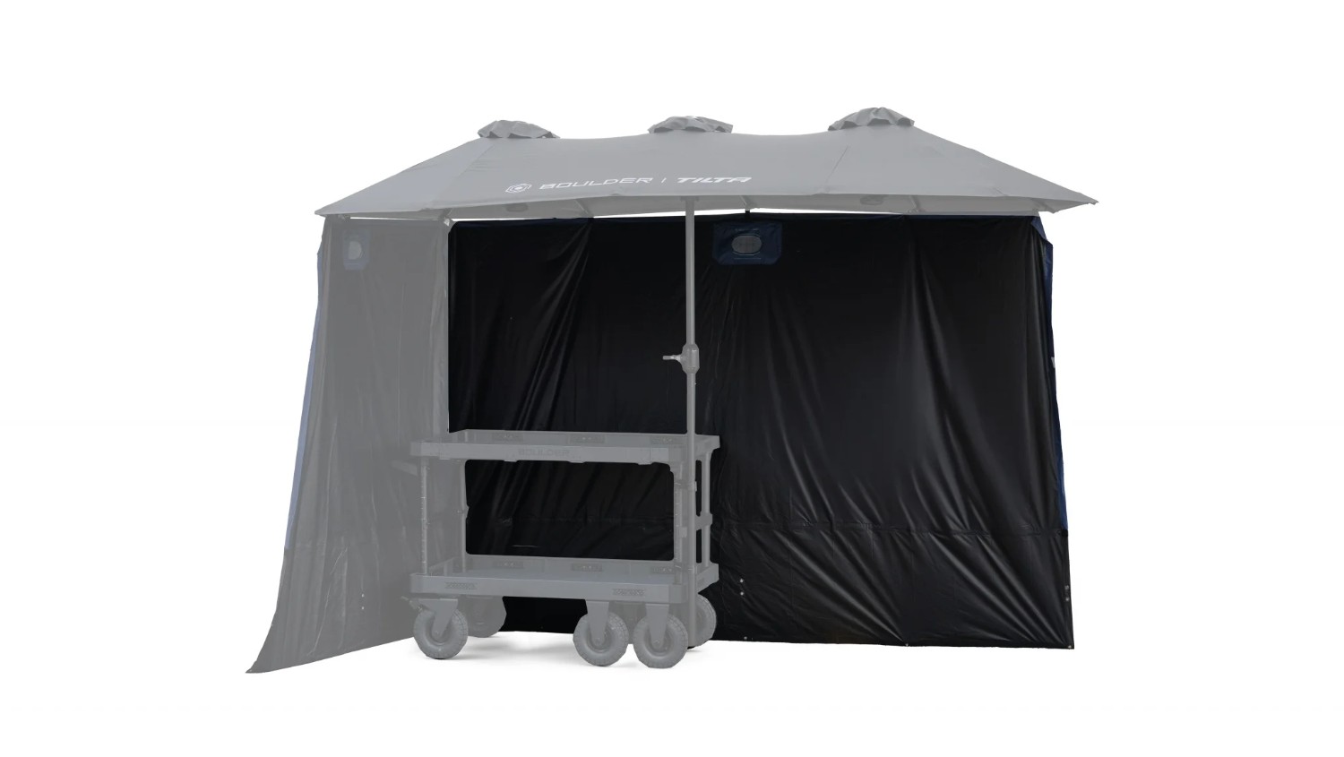 A Tilta napellenző a Boulder Camera Cart Extended Umbrella (4 Panel) teljes sötétítést biztosít videó stábok számára, csökkentve a tükröződéseket és a visszaverődéseket, hogy biztosítsa a monitorok tisztán láthatóságát fényes kültéri környezetben.