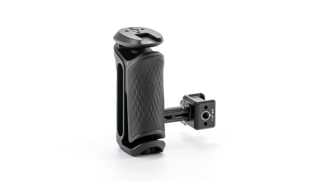 A fogantyú csúszásmentes szilikonnal rendelkezik, amely texturált fogást biztosít, ami javítja a stabilitást a biztos tartás érdekében, és olyan rögzítési pontokkal rendelkezik, mint a Cold Shoe Receiver és az 1/4″-20 menet, további tartozékok rögzítési pontjaival