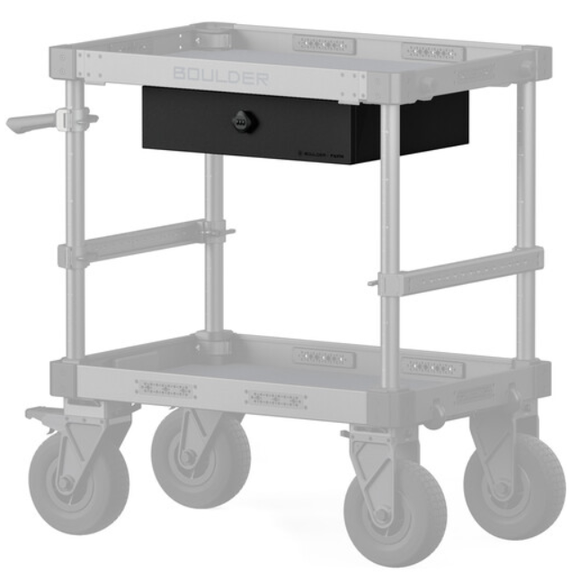 A Tilta TC-TD-B felső fiók zárral (fekete) egy nagy teherbírású, zárható alumínium fiók, amely közvetlenül bármely Boulder Camera Cart felső tálcája alá szerelhető, és biztonságos, időjárásálló tárolóhelyet biztosít értéktárgyak, szerszámok, akkumulátorok vagy érzékeny felszerelések számára, miközben azokat elrejti és megvédi a forgatáson.