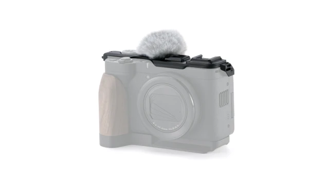 Bemutatjuk a Canon PowerShot V1 felső lemezét. Ez a védő felső lemez a Canon PowerShot V1 fényképezőgép vázának tetejére szerelhető, hogy könnyű és robusztus védelmet nyújtson a fényképezőgépnek. A levehető hideg cipőfoglalat lehetővé teszi a felhasználók számára, hogy hideg cipőfoglalatú kiegészítőket, például mikrofonokat, monitor tartókat vagy beépített lámpákat szereljenek fel.