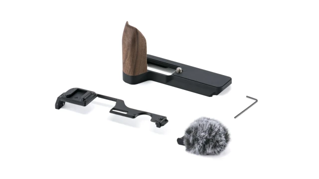 Ennek a Canon PowerShot V1 alapvető vintage készletnek az alapja egy diófa fogantyúval ellátott szerelőalaplap, amely kényelmesebb kezelést és kezelhetőséget biztosít a fényképezőgéphez, miközben kompakt és utazáshoz is alkalmas marad.