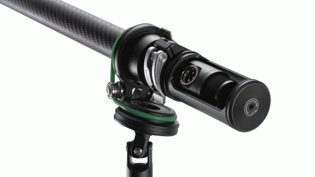A kialakítás legintegráltabb része a működtető konzol, amely a boom pole hátsó végéhez csatlakozik, és lehetővé teszi a mikrofon irányának egyszerű beállítását.