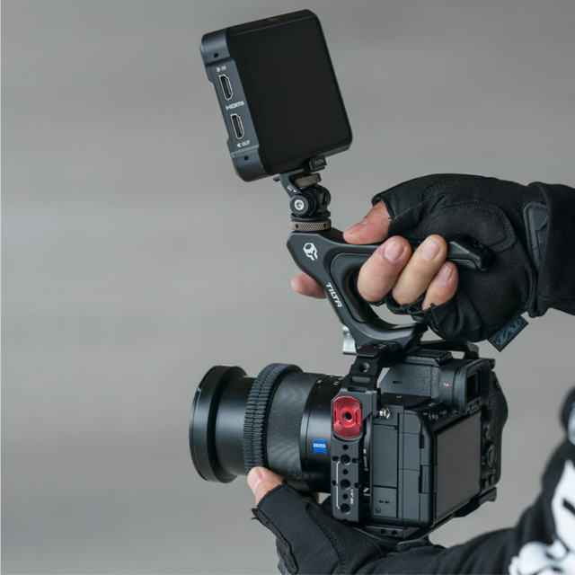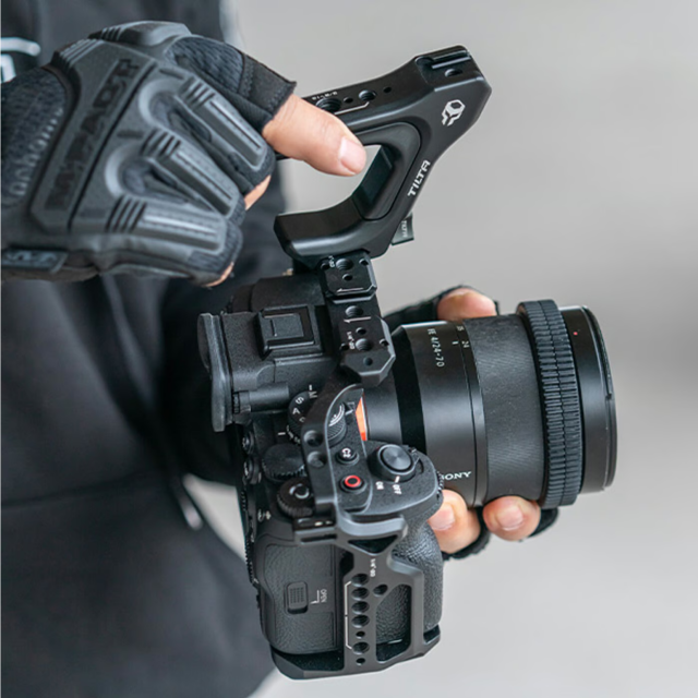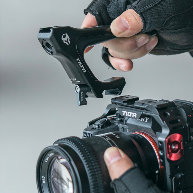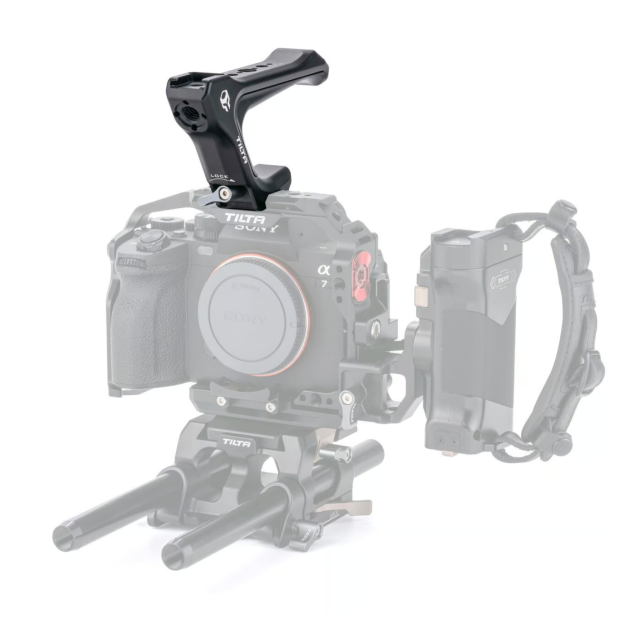 Ez a felső fogantyú könnyen és biztonságosan rögzíthető a Sony a7 IV teljes kameraketrecének tetejére.