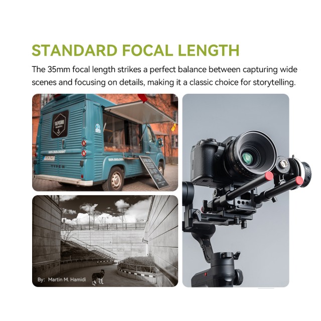A TTArtisan 35 mm T2.1 L teljes képkocka méretű filmobjektív egy hatékony eszköz, amelyet azoknak a operatőröknek készítettek, akik mind a kép élességét, mind a kreatív kontrollt igénylik. A manuális fókuszrendszerrel ellátott objektív sima, pontos fókuszálást biztosít, ami elengedhetetlen a narratív filmek, reklámok vagy dokumentumfilmek dinamikus felvételeihez.