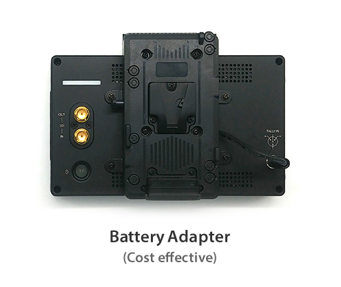 A TVLogic akkumulátor tartójának csatlakoztatásával két Panasonic AF-100 akkumulátorral