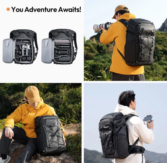 Az Ulanzi AB01 TAI Outdoor Camera Backpack egy 38 literes, kalandokra kész hátizsák, amelyet fotósok és technológiai rajongók számára terveztek. Testreszabható párnázott elválasztókkal, gyorsan hozzáférhető zsebekkel, ergonómikus támasztékkal és beépített U-Tag nyomkövetéssel gondoskodik arról, hogy fényképezőgéped, laptopod és egyéb fontos tárgyaid biztonságban legyenek, rendezettek és készen álljanak arra, hogy elkísérjenek kalandjaidra.