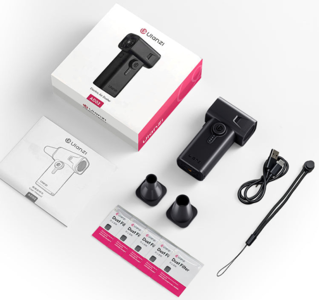 Az Ulanzi AD02 STORM Electric Air Duster II egy kompakt, tenyérnyi méretű tisztító eszköz, turbófeltöltésű légárammal, gyors Type-C töltéssel és multifunkcionális kialakítással. Tökéletes kamerák, elektronikai eszközök, felfújható termékek és háztartási tisztításhoz, erőteljes, precíz légsugarakat biztosít LED-es megvilágítással és könnyen cserélhető szűrőkkel.