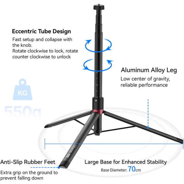 Az Ulanzi AT-01 Offset Vlog állvány egy kompakt és tartós alumínium állvány, amelyet vloggerek és tartalomkészítők számára terveztek. Gyorsan kinyitható, könnyű és akár 5 kg-ot is elbír, 48 cm-ről 152 cm-re nyújtható, így stabilitást biztosít a kameráknak és kiegészítőknek útközben.