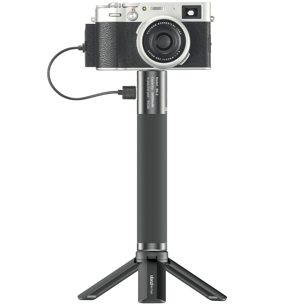 Az Ulanzi BG-3 egy sokoldalú, 10 000 mAh-s kézi fogantyú beépített mini állvánnyal, két USB-porthoz és 1/4"-20-as rögzítőcsavarral, amelyet vloggerek, mobil fotósok és tartalomkészítők számára terveztek, akiknek egy kompakt eszközben van szükségük teljesítményre, stabilitásra és hordozhatóságra.