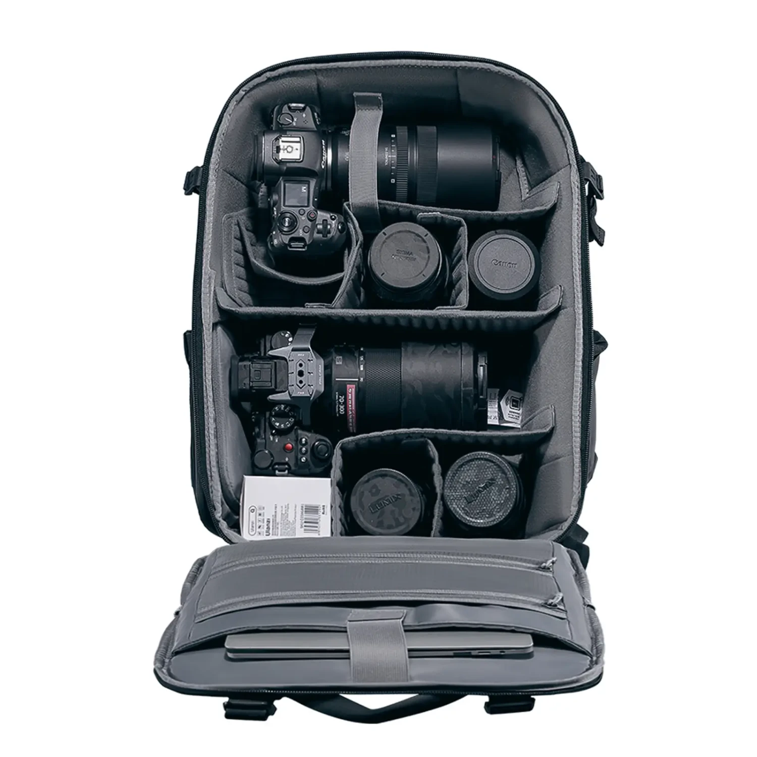 Az Ulanzi 22L fényképezőgép-hátizsák ideális utazáshoz és a napi ingázáshoz. Csomagolja be fényképezőgépét és ruháit ugyanabba a táskába, és a kivehető, összecsukható elválasztókkal rendezze el felszerelését. Nagy kapacitású, párnázott betéttel ellátott fotós hátizsák, 16 hüvelykes laptoprekesszel, professzionális vízálló fényképezőgép-táska Canon/Nikon/Sony/DJI Mavic Drone készülékekhez.