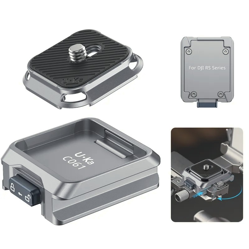 Az Ulanzi C061 Uka gyorskioldó készlet a DJI RS sorozathoz úgy lett kialakítva, hogy egyszerűsítse a kamerák felszerelését a DJI RS stabilizátorokat használó filmesek és tartalomkészítők számára. A DJI RS 2, RS 3, RS 3 Pro, RS 4, RS 4 Pro és RS 4 Mini modellekkel kompatibilis, sokoldalú gyorskioldó rendszer lehetővé teszi a kamera másodpercek alatt történő felszerelését és leszerelését, miközben maximális stabilitást biztosít.