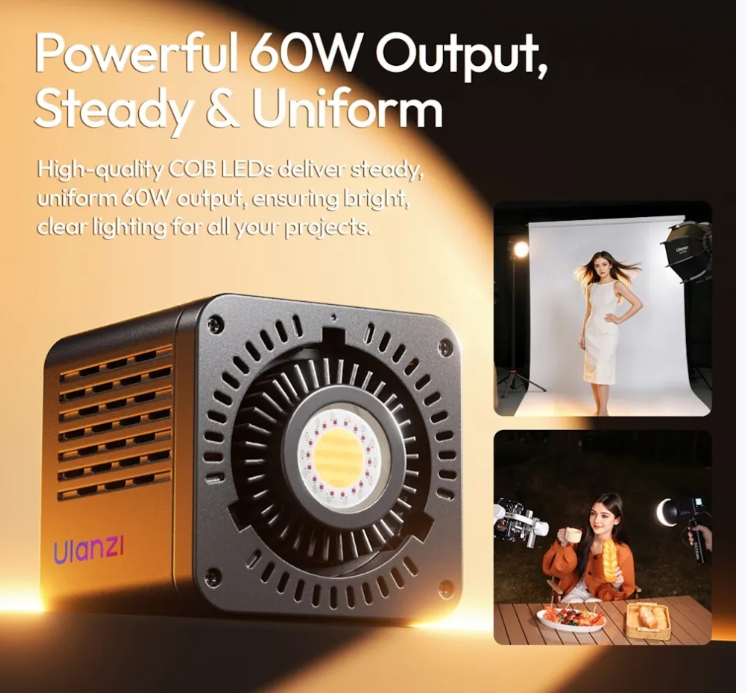 Az Ulanzi C60RGB 60 W-os RGB COB LED videólámpa egy kompakt, professzionális szintű világítási megoldás tartalomalkotók számára. Teljes RGB-színskálával és állítható fehér/meleg fényével, beépített 3300 mAh-s akkumulátorával, 20 jelenetszimulációs üzemmódjával, valamint a mini Bowens-foglalattal való kompatibilitásával erőteljes, sokoldalú megvilágítást biztosít portrékhoz, vlogokhoz, élő közvetítésekhez és filmes tartalmakhoz.