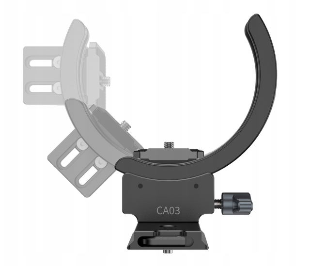 Az állítható platformmagasság lehetővé teszi a különböző objektívek finomhangolását, míg a félkör alakú gallér kialakítás lehetővé teszi a felszerelést anélkül, hogy az objektívet le kellene venni a fényképezőgépről. A karcolás- és korrózióálló alumíniumból és acélból készült CA03 akár 5 kg súlyú objektíveket is képes megtartani, miközben könnyű és hordozható formátumát megőrzi.