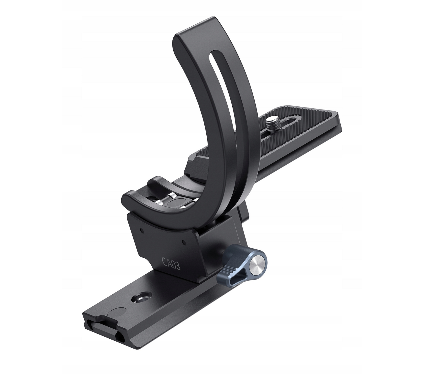 Az Ulanzi CA03 egy precíziós objektívgallér-állványtartó, amelyet 95 mm átmérőjű objektívekhez terveztek, és amely nagyobb stabilitást és jobb terheléseloszlást biztosít a nehezebb fényképezőgép-konfigurációkhoz. A CA03 a fényképezőgép bajonettjéről az állványra helyezi át a súlyt, így védi a fényképezőgép tartóját, miközben jobb egyensúlyt és stabilabb keretezést biztosít stúdióban és kültéri fényképezési környezetben egyaránt.