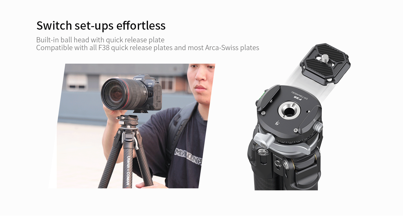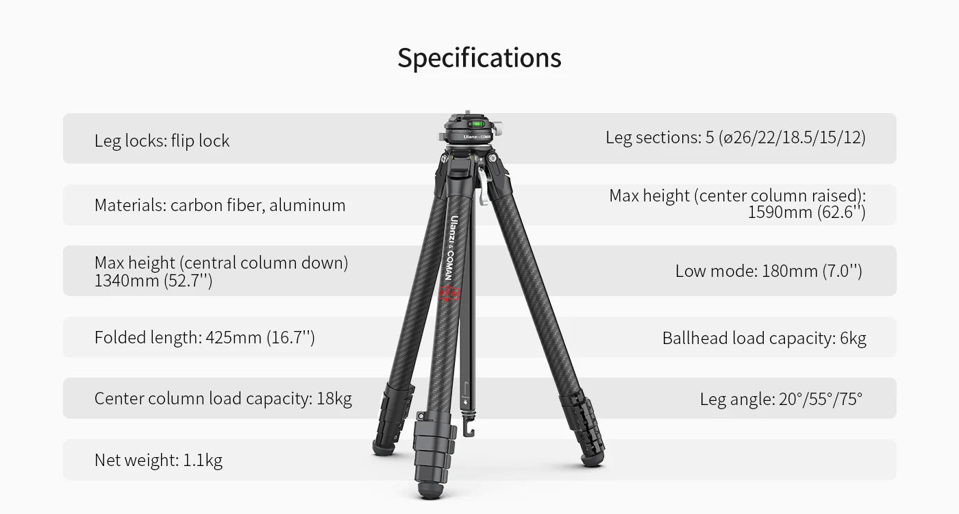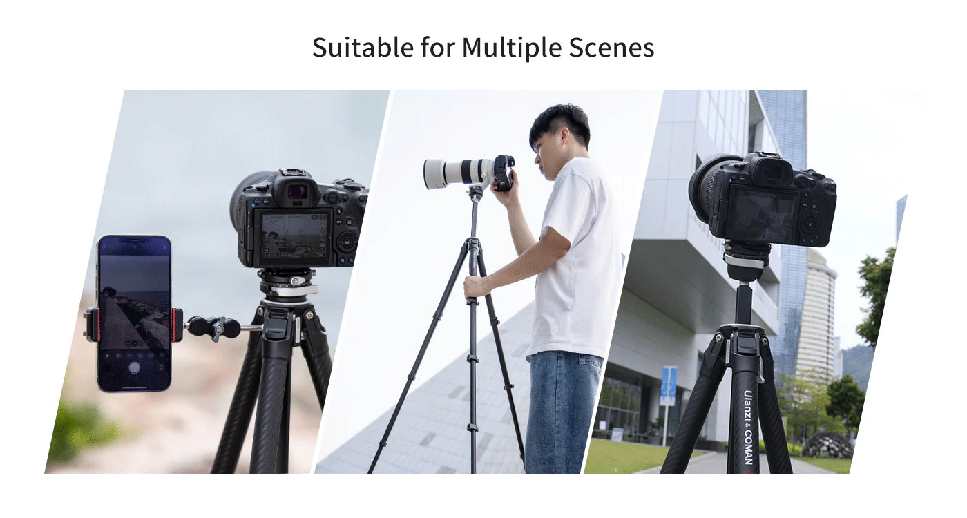 Ulanzi Zero F38 gyorskioldós utazási állvány: Készítsen lenyűgöző felvételeket útközben ezzel a kompakt és könnyű (1,1 kg) szénszálas utazási állvánnyal. A beépített gömbfej és az F38 gyorskioldós lemez segítségével könnyedén válthat a különböző beállítások között, míg a mellékelt extra középoszlop Arca-Swiss kompatibilitást biztosít a maximális rugalmasság érdekében. Választhat különböző szögekből a beállítható lábak (20°/55°/75°) és a levehető rövid oszlop segítségével az alacsony szögű felvételekhez. Az Ulanzi Zero F38 tartós kialakítású, akár 18 kg terhelést is elbír, és minden alkatrésze szervizelhető, életre szóló garanciával. Engedje szabadjára kreativitását, és örökítse meg a felejthetetlen pillanatokat, bárhová is utazik!