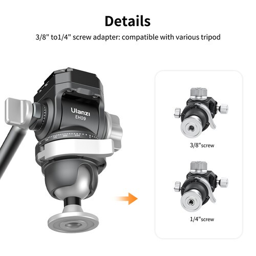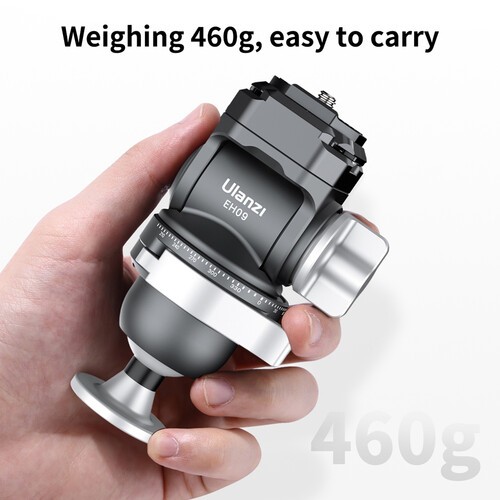 Az Ulanzi EH09 fordított gömbfej egy precíziósan megmunkált, Arca-Swiss kompatibilis gömbfej, amely ideális azoknak a fotósoknak, akik sima vízszintes és függőleges felvételeket szeretnének készíteni. Akár 5 kg (11 lb) terhelést is elbír, 118°-os dőlésszöggel, 360°-os forgathatósággal, kettős vízmértékkel és levehető multifunkciós fogantyúval rendelkezik, ami sokoldalúvá, hordozhatóvá és tökéletessé teszi mozgás közbeni felvételek készítéséhez.