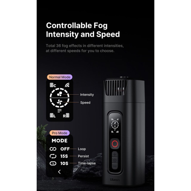 Az Ulanzi FM01 FILMOG Ace hordozható ködgenerátor egy kompakt, kézi ködgenerátor, 36 állítható köd üzemmóddal, vezeték nélküli távirányítóval és USB-C töltőporthoz. Fotózáshoz, rendezvényekhez vagy színpadi effektusokhoz tökéletes, könnyű, hordozható és védőhordtáskával rendelkezik. (Ködfolyadék és elemek nem tartoznak a csomaghoz.)