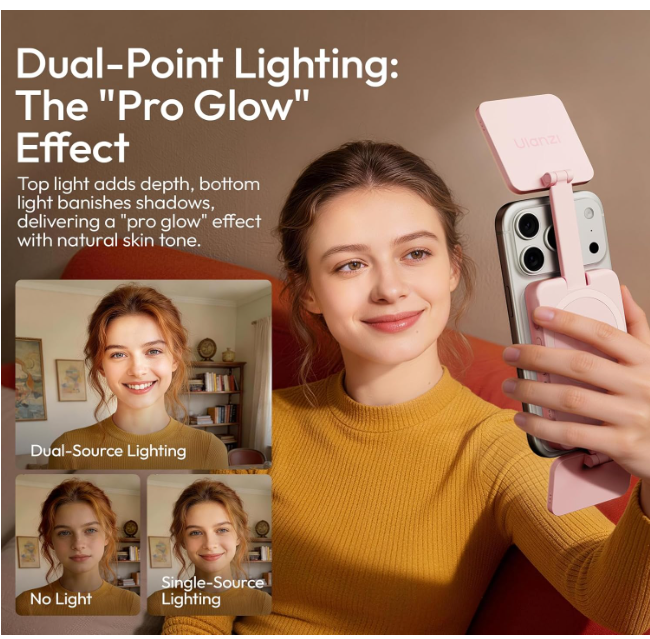 Az Ulanzi GL01 GlowUp kiegészítő lámpa (Noir Black) egy kompakt, kétoldalas LED-lámpa,