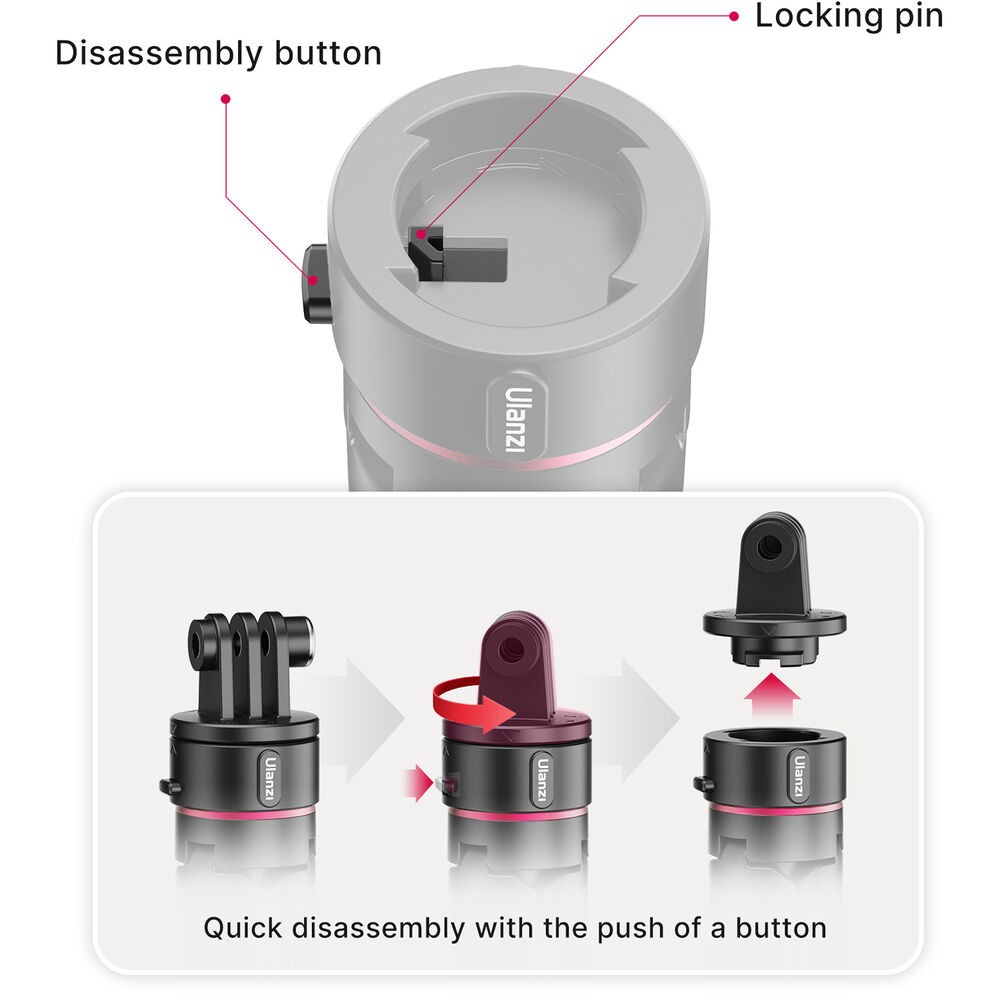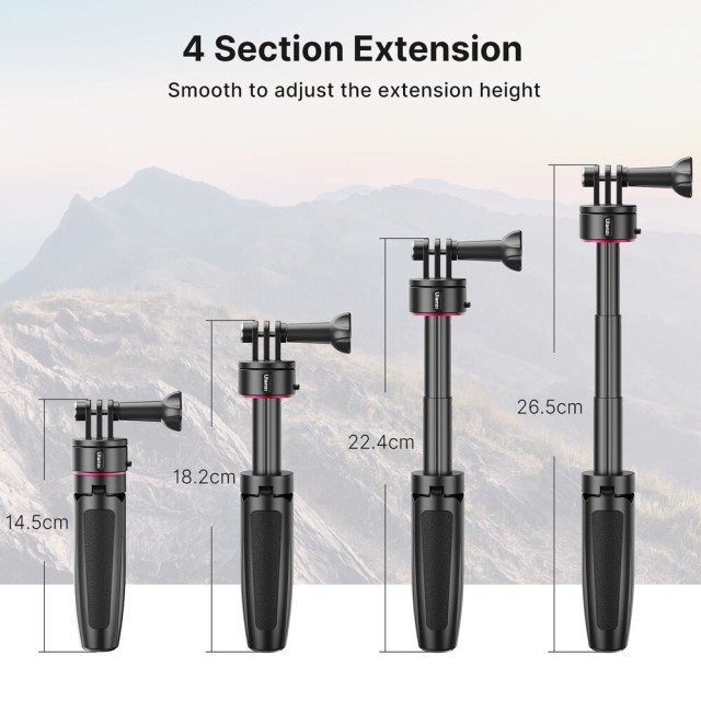 Az Ulanzi Go-Quick II Action Camera Tripod egy kompakt, 2 az 1-ben mini állvány és szelfibot, amelyet kifejezetten akciókamerákhoz terveztek. Mágneses gyorskioldó zárrendszerrel és beépített hosszabbító rúddal rendelkezik, így gyors felszerelést, hordozhatóságot és sokoldalú felvételi szögeket biztosít a mozgásban lévő alkotók számára.