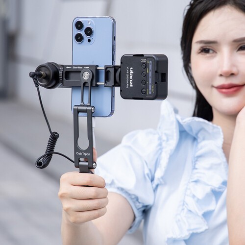 Az Ulanzi HP004 multifunkcionális Crab Tripod egy kompakt, összecsukható okostelefon-tartó, amely asztali állványként vagy kézi fogantyúként is használható, 360°-os forgathatósággal, kettős hideg cipőfoglalattal és Arca/1/4" kompatibilitással rendelkezik, így sokoldalú mobil tartalomkészítésre alkalmas.