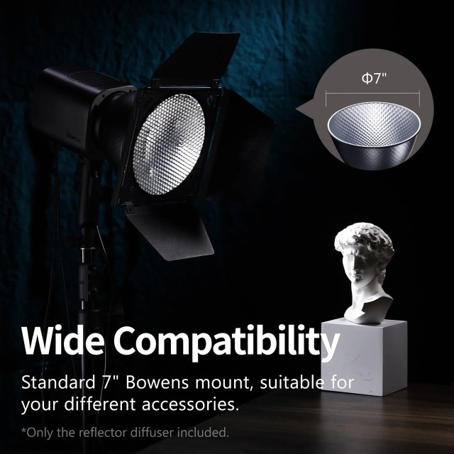 Az Ulanzi HT002 7" Standard Bowens Mount Reflector Diffuser egy könnyű és tartós alumínium reflektor, amelyet Bowens-mount lámpákhoz terveztek. Fényvisszaverő ezüst és fehér festésű belső felülete egyenletes, lágy fényt biztosít, így ideális fotózáshoz, videózáshoz és utazás közbeni felvételekhez.