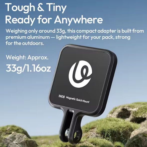Az Ulanzi IN08 mágneses adapter a GO Ultra kamerához egy kompakt és strapabíró rögzítési megoldás, amelyet kézmentes felvételek készítésére terveztek. Erős mágneses rögzítésével és könnyű alumíniumötvözetből készült szerkezetével biztonságosan rögzíthető fejpántokra, nyakpántokra és szelfibotokra – így tökéletes választás vlogoláshoz, kerékpározáshoz és a mindennapi kalandokhoz.