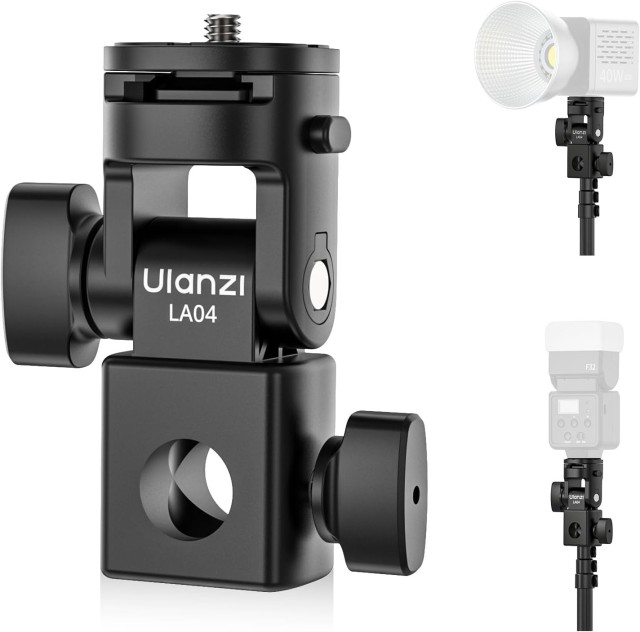 Az Ulanzi LA04 fényállvány-adapter egy kompakt, sokoldalú kiegészítő, amely lehetővé teszi kamerák, telefon tartókat és videofényeket rögzíteni szabványos fényállványokra. 1/4 hüvelykes csavarral, hideg cipő rögzítéssel és 180°-os dőlésszög-beállítással rendelkezik, így rugalmas pozicionálást biztosít fotók és videók készítéséhez, miközben könnyű és hordozható marad.