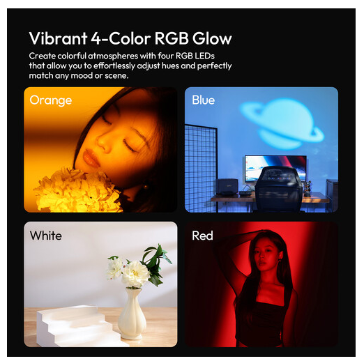 Színszabályozás: RGB LED-ek (narancs, kék, fehér, piros) a különböző hangulatok és környezetekhez.