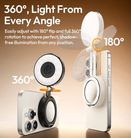 Kompakt gyűrűs lámpa kialakítása egyenletes megvilágítást biztosít, míg a beépített tükör lehetővé teszi a gyors sminkjavítást vagy a képkivágás ellenőrzését. Akár tartalmat rögzít, videohívásokon vesz részt, vagy sminkel, az LM23 állítható megvilágításával és rugalmas használhatóságával javítja a felszerelését.